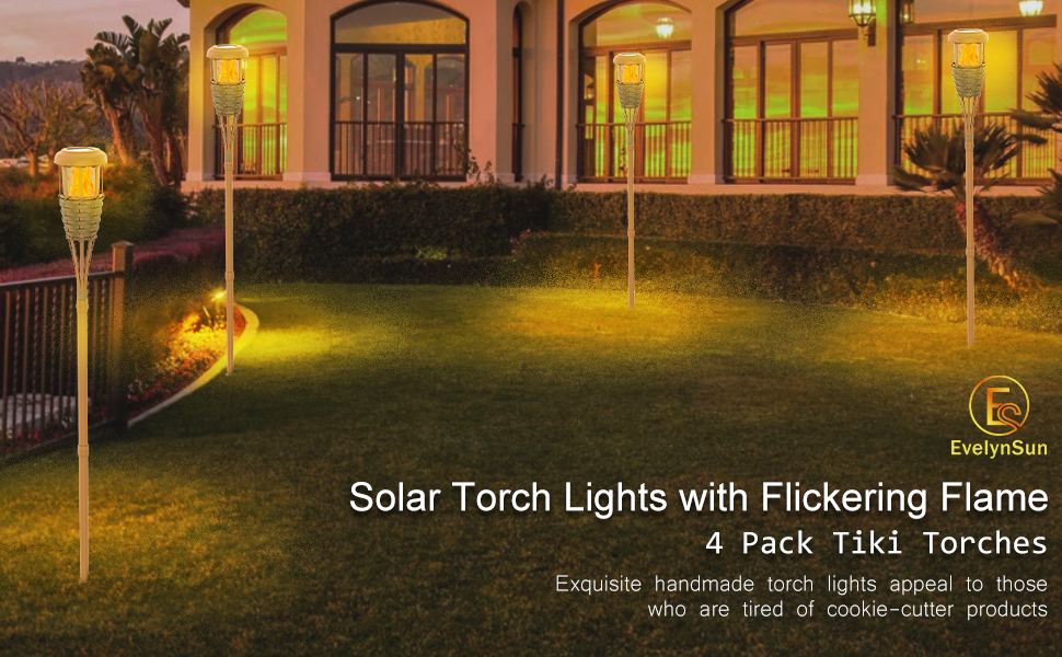 Amazon Com Evelynsun Tiki Torch Solar Lights Outdoor Solar Torch Light With Flickering Flame Waterproof Garden Tiki Torches For Outside Tools Home Improvement