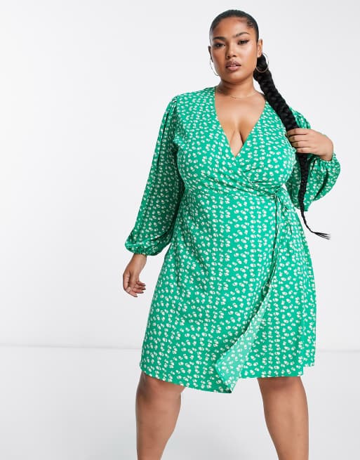 Glamorous Curve Mini Wickelkleid In Grun Mit Tulpenmuster Asos