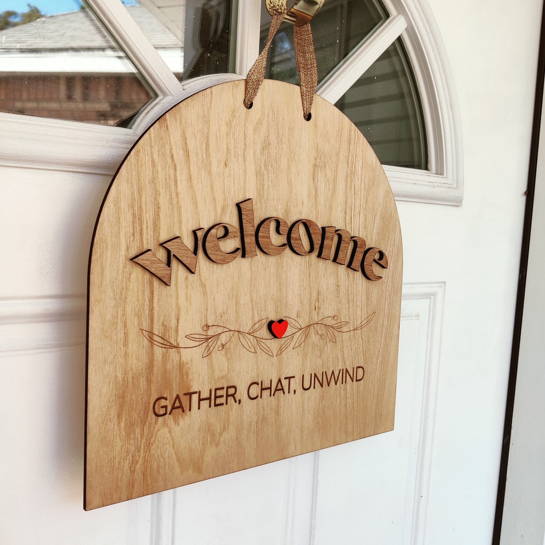 Heartwarming Wooden Welcome Door Sign Gather Chat Unwind Etsy Schweiz